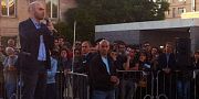 Nella piazza simbolo della legalità, intitolata alla dottoressa Monica Moretti uccisa da uno stalker, l´autore di "Gomorra" e del suo ultimo libro "Zero.Zero.Zero" ha parlato anche dell´arresto di Graziano Mesina