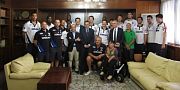 I biancoblu si sono recati al gran completo in visita in Via Roma, a Cagliari, ricevuti dal presidente della Regione Autonoma della Sardegna Francesco Pigliaru e dal presidente del Consiglio Regionale Gianfranco Ganau