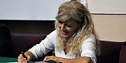 Presenterà il libro “La bellezza nel pugno”, raccolta poetica. Il volume, edito dalla stessa autrice e stampato dalle “Grafiche Peana” di Alghero, gode di una pregevole veste grafica esaltata anche dalla copertina