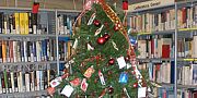 Un addobbo personalizzato all´albero di natale della Biblioteca comunale nell´iniziativa dell´amministrazione e della cooperativa Comes