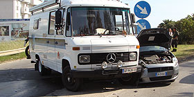 ALGHERO - Scontro questo pomeriggio tra un camper e una Fiat Punto all'uscita di Alghero, proprio nell'innesto della strada dei Due Mari. Per cause ancora da accertare, pare una manovra azzardata del conducente del grosso mezzo, i due veicoli sono venuti in collisione e nello scontro hanno perso un gran quantitativo di olio lubrificante che ha causato la temporanea chiusura della carreggiata. Il traffico è stato veicolato dal Vigili Urbani intervenuti sul posto sulla stradina secondaria che costeggia il cementificio, ed ha subito un lungo rallentamento. Sul posto sono intervenuti i Vigili del Fuoco che hanno proceduto alla pulizia dell'asfalto e i Carabinieri per effettuare i primi rilevamenti.