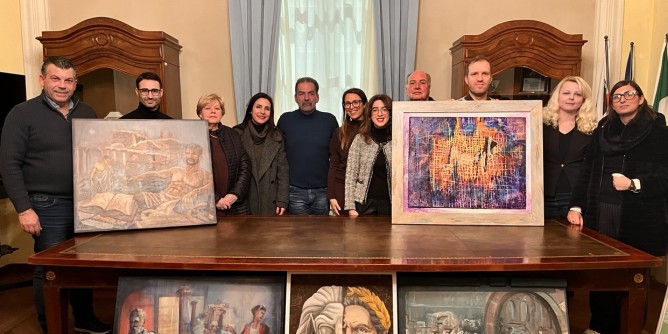 Il riconoscimento è stato assegnato nel corso di una cerimonia ospitata giovedì pomeriggio, 8 gennaio, nella sala di rappresentanza del Palazzo del Marchese, sede istituzionale del Comune turritano. All’appuntamento hanno partecipato l’assessora alla cultura Maria Bastiana Cocco, il presidente della Commissione comunale Cultura Antonello Cabitta, il presidente della TNT Global Art Gianni Nieddu, gli 11 artisti coinvolti, alcuni turritani e altri in arrivo da altri centri dell’hinterland e la commissione giudicatrice formata dal direttore del Museo Antiquarium Turritano Stefano Giuliani, dalla storica dell’arte della Direzione Regionale Musei Sardegna Silvia Pinna e dal promotore dell’evento “Non era solo Garum” Gavino Sanna.