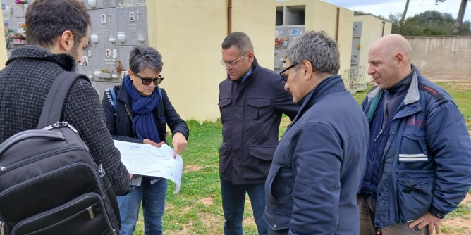 ALGHERO - Intervento di ampliamento, miglioramento del decoro e messa in sicurezza del cimitero con manutenzioni straordinarie, grazie a un investimento di risorse pari a 1.090.000 euro. Ieri mattina il sopralluogo del Sindaco Raimondo Cacciotto e dell’Assessore ai Lavori Pubblici Francesco Marinaro con l’impresa aggiudicataria delle opere previste e programmate dall’Amministrazione per restituire piena funzionalità e accessibilità al camposanto. Il completo restyling, da mettere in atto grazie a fondi di bilancio e a un progetto che prevede nuovi spazi, decoro e fruibilità, conta sulla costruzione di 264 nuovi loculi, circa 400 nuove celle per ossari, la riqualificazione e la manutenzione straordinaria dell’esistente.