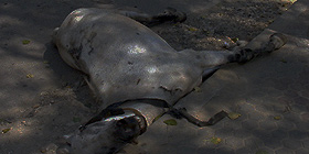 Un cavallo sconfina dal recinto e provoca un brutto incidente. Viene investito da un auto e muore. Illesi i conducenti dell´auto