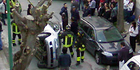 I primi soccorsi agli automobilisti sono stati offerti da alcuni passanti che sono immediatamente intervenuti, aiutanto il conducente ad uscire dall'abitacolo cappottato dopo aver tagliato la cintura di sicurezza. Sul posto i Vigili del Fuoco del distaccamento di via Genova e i volontari del 118. Tutti illesi fortunatamente autisti e passeggeri delle due auto coinvolte (solo alcuni graffi e qualche contusione) e i pedoni.