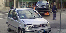 Nella foto: Il carro attrezzi con la Lancia 156 danneggiata dal sinistro e la Panda