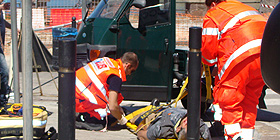 Nella foto: una fase dei soccorsi nell'incidente di questa mattina ad Alghero