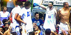 Nella foto: I festeggiamenti della Dinamo Sassari per la promozione in Serie A1