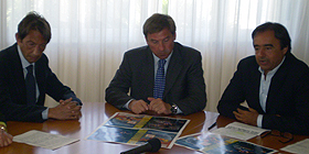 Nella foto: un momento della conferenza stampa di questa mattina a Sant'Anna
