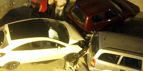 ALGHERO - Carambola tra auto parcheggiate in via Sassari la notte scorsa, intorno alle 2, proprio all'incrocio con via Pascoli. Luogo già teatro di numerosi sinistri in passato. Il rumore dell'urto ha sbalzato dal letto numerosi residenti della zona, qualcuno dei quali ha avuto la brutta sorpresa di ritrovarsi la macchina, regolarmente parcheggiata, incastrata nel groviglio creatosi in seguito all'incidente.