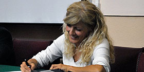 ALGHERO - «Leggere una bella poesia è come cercare al buio qualcosa che non c’è… e trovarla!». Potremmo dire così, parafrasando Vittorio Gassman, per il lettore appassionato troverà sicuramente ciò che cerca tra i versi de “La bellezza nel pugno”, il libro di poesie scritto ed edito da Anna Borghi, presentato giovedì sera nell’affollata sala del Caffè letterario “Il Manoscritto”, nell’incontro organizzato dall’Associazione Poesia a strappo Alghero e moderato da Daniela Montisci.