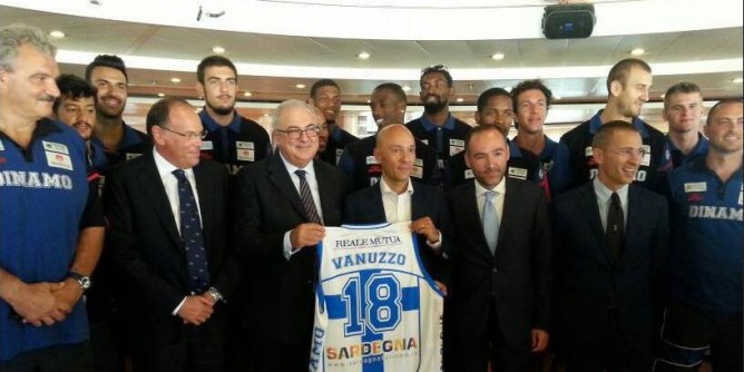 Testimonianza di questa unione il marchio della compagnia stampato sulla nuova maglia della nuova stagione 2014-2015, presentata per l’occasione dal presidente del club sassarese Stefano Sardara alla presenza di Fernando Marino (presidente Legabasket) e del Direttore Reale Mutua, Marco Mazzucco. Presenti anche il Direttore Banco di Sardegna, Giuseppe Cuccurese, il Presidente Tirrenia, Ettore Morace, il Comandante del traghetto Nuraghes, Giovanni Vespoli, e Antonio Usai dell'assessorato al turismo della Regione Sardegna. In una speciale conferenza stampa sulla nave Nuraghes ormeggiata a Porto Torres è stata annunciata la preziosa partnership che anticipa la presentazione della Dinamo questa sera presso le tenute di Sella e Mosca di Alghero e che vedrà come madrina d’eccezione Elisabetta Canalis.