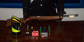 Nella foto: una carabina e dei proiettili