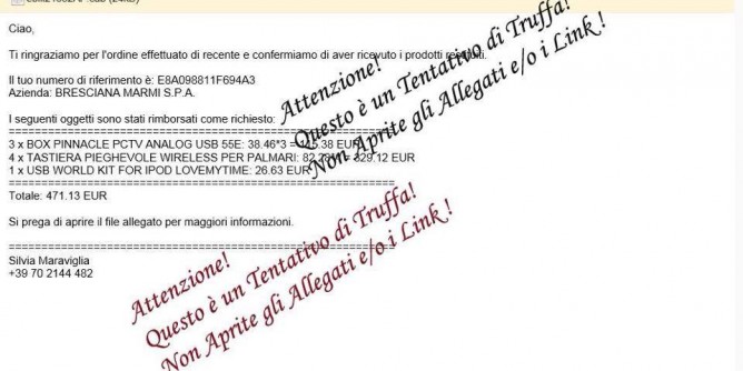 In considerazione che nella stragrande maggioranza dei casi, per decriptazione non vi è alcuna possibilità tecnica, se non quella di pagare il riscatto richiesto dai cybercriminali, la Questura di Nuoro ritiene utile informare gli utenti di internet. I ransomware sono una particolare categoria di malware che "prendono in ostaggio" il sistema, chiedendo poi il versamento di un riscatto (infatti, il termine "ransom", in inglese, significa proprio "riscatto"). Negli ultimi giorni, si stanno moltiplicando negli uffici della Polizia delle Comunicazioni di Nuoro le segnalazioni di utenti e di funzionari delle Pubblica Amministrazione che si sono visti cifrare, con una chiave crittografica sconosciuta, tutti i documenti ed i file personali memorizzati sul computer. Le caselle di posta elettronica delle Pubbliche amministrazioni (ed in particolar modo dei Comuni del Nuorese), sono state “prese d’assedio”da messaggi apparentemente provenienti da dipendenti o da aziende che collaborano con gli stessi enti. Interamente redatti in lingua italiana, le e-mail fanno riferimento a presunti ordini, a fatture di acquisto o ad ordini da saldare.