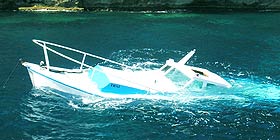 Nella foto il natante semiaffondato a venti metri dalla costa