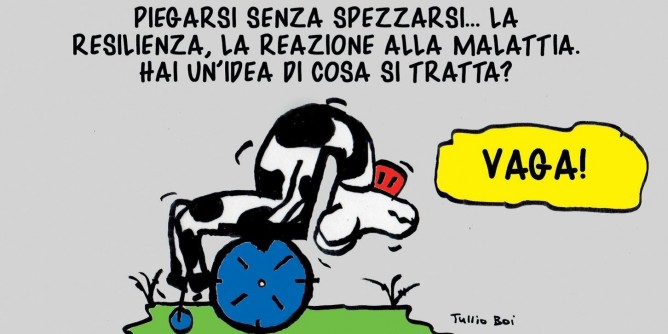 ‘Disabill Kill’ viene realizzato grazie a un progetto di crowdfunding, è un ‘dizionario semi-serio’ e nasce con due scopi: divertire e far pensare. Far pensare un pubblico che coinvolge anche i disabili non è facile, tutt’altro: Tullio Boi ci prova col suo personaggio, una mucca bianca e nera in carrozzina. ‘Disabill Kill’ – evidente il richiamo a ‘Kill Bill’ di Quentin Tarantino – raccoglie 26 vignette firmate Boi e 26 firmate Vanessi: «Tutte ironiche, mai tragiche. Parliamo e disegniamo di coma, Dio, autismo, cecità, sordità, Alzheimer… Abbiamo cercato di coinvolgere tutte le disabilità» spiega ancora Boi che aggiunge «Se una persona non ironizza, si perde un pezzo importante di vita. La disabilità non è la fine della vita, ma solo un capitolo».